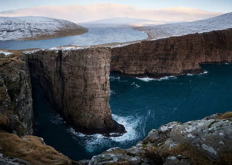 Озеро на Фарерских островах кажется неестественным