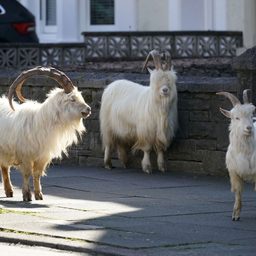В уэльском городке Лландидно в Уэльсе, где в связи с коронавирусом опустели улицы, на передний план вышли козы. Небольшое стадо диких кашмирских коз, которые обычно бродят по скалистым склонам близлежащих гор, воспользовалось моментом, ворвались в город и стали объедать лужайки и живые изгороди.