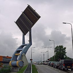 В городке Леуварден (Нидерланды) находится уникальный «Летающий мост». Конструкция состоит из квадратной платформы (размер: 15 м на 15 м) и специальной установки, позволяющей опускать и поднимать столь необходимый элемент. Мост Slauerhoffbrug соединяет два участка дороги.
