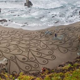 Американский художник Андрес Амадор создаёт свои картины на самых больших в мире полотнах — песчаных пляжах Сан-Франциско.
