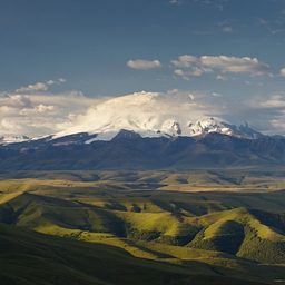 Эльбрус — двувершинный конус вулкана на Кавказе и высочайшая вершина России. По одной из версий, название Эльбрус происходит из иранского Айтибарес — «высокая Гора», но более вероятно — иранское «сверкающий, блестящий».