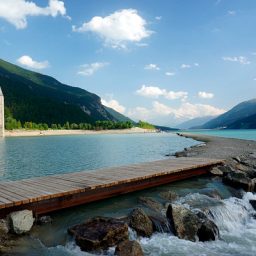 В Италии, как раз на границе со Швейцарией, находится прекрасное озеро Резия. Но известно оно даже не из-за своей живописности, а потому что на нем стоит необычный и странный памятник. Над водной гладью возвышается колокольня.