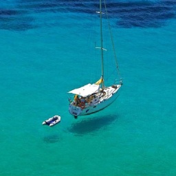 Когда лодка стоит на кристально чистой воде создается интересный эффект, кажется что она просто парит в воздухе.