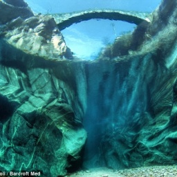 Несмотря на то, что глубина реки Верзаска (Verzasca) 15 метров, вода настолько в ней кристальная, что без труда можно рассмотреть мостик над ней. 30-километровая швейцарская река известна во всем мире своими бирюзовыми водами.